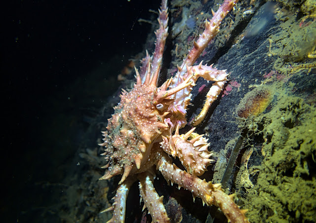 Either way, we followed the slope down until we found the wall, where we instead started to follow it to the left instead, making our way down into the depth. On the wall, there were a few Norway king crabs hanging about as well as other critters. At about 20 minutes, we turned around and started to swim back. At about 6 m, one of my buddies were to shoot their DSMB, which we had planned on the surface. It was at this point we sort of lost contact with our other buddy due to the super bad visibility (or at least i did). When we surfaced, i found them again, so probably, they could see us, but i couldn't see them.
