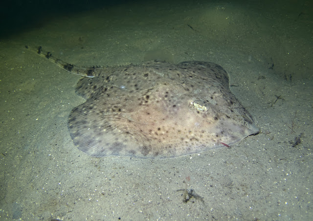 | Thorny skate (Amblyraja radiata), a slightly uncommon sight at our dive sites |